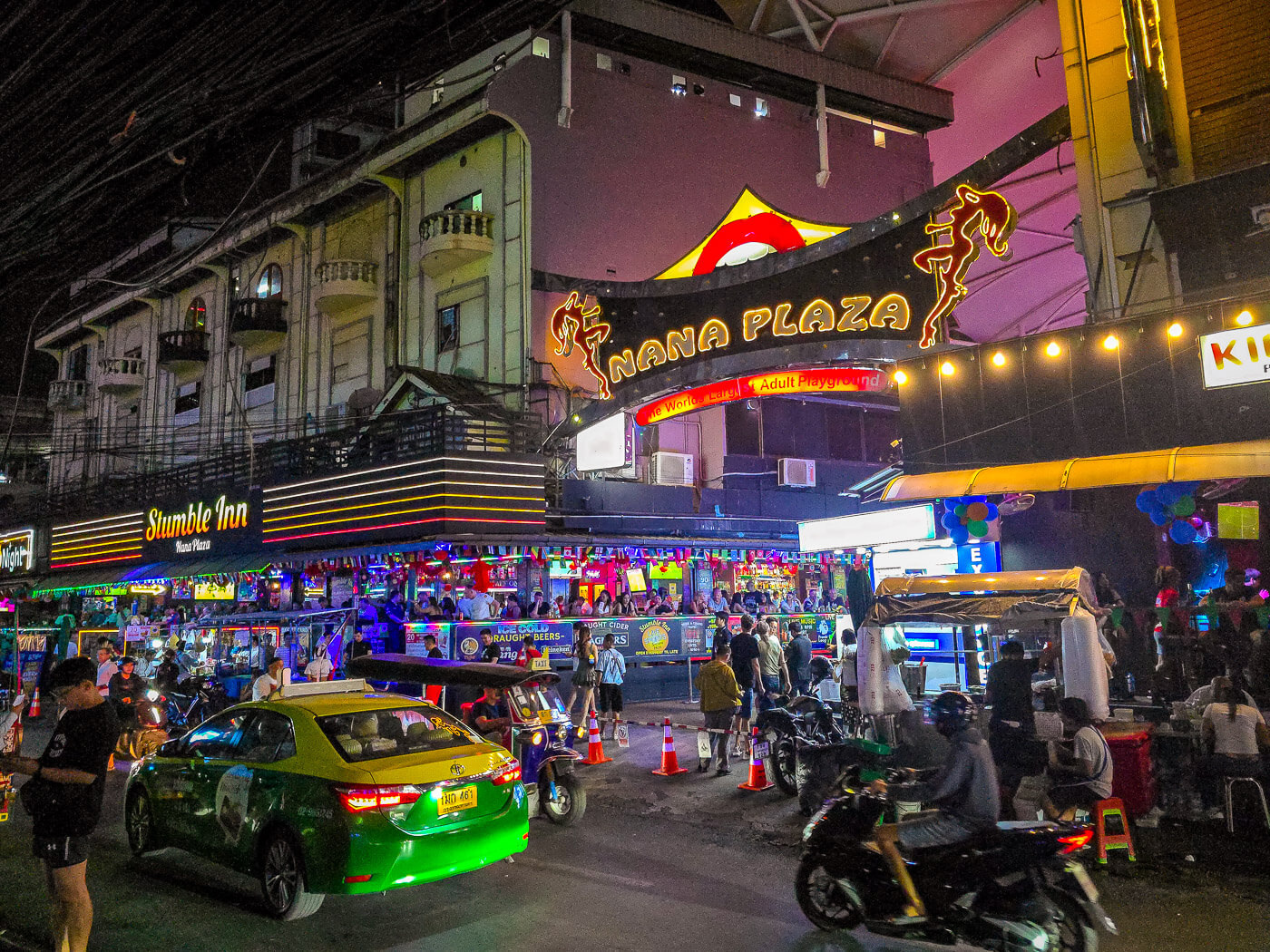 As I made my way down Soi 4, the energy shifted. The neon lights grew brighter, the bars became louder, and the crowds thickened. I was heading straight into Nana Plaza.